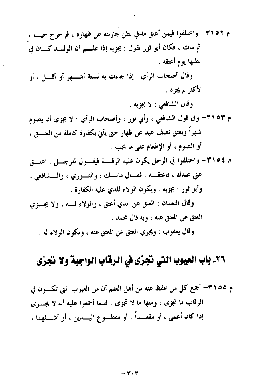 3155 - أجمع كل من نحفظ عنه من أهل العلم أن من العيوب التي تكون في الرقاب ما تجزى، ومنها ما لا تجزى، فمما أجمعوا عليه أنه لا يجزى إذا كان أعمى، أو مقعداً، أو مقطوع اليدين، أو أشلهما،