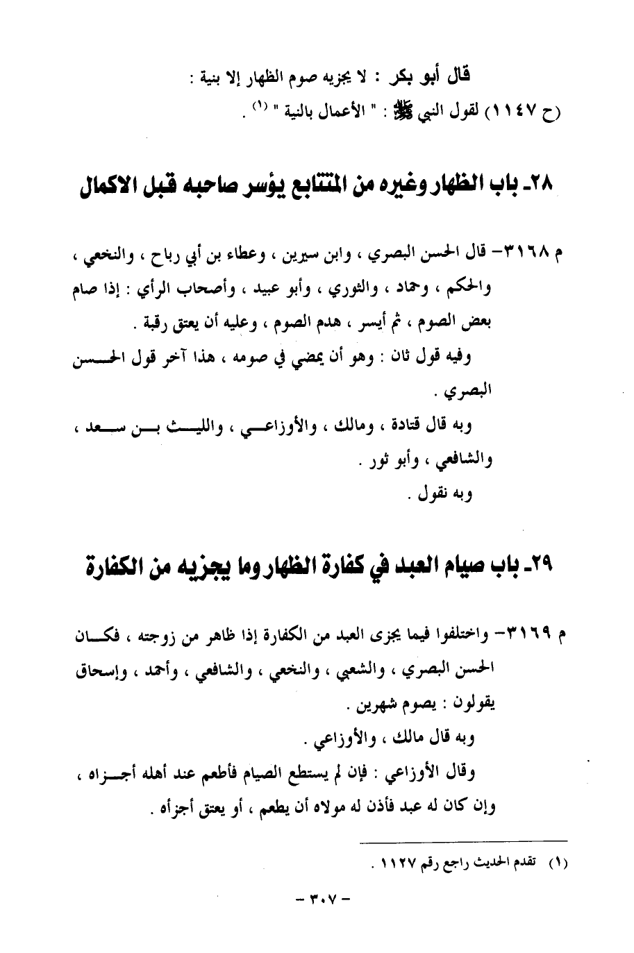 م 3169 - واختلفوا فيما يجزي العبد من الكفارة إذا ظاهر من زوجته، فكان الحسن البصري، والشعبي، والنخعي، والشافعي، وأحمد، وإسحاق يقولون: يصوم شهرين.