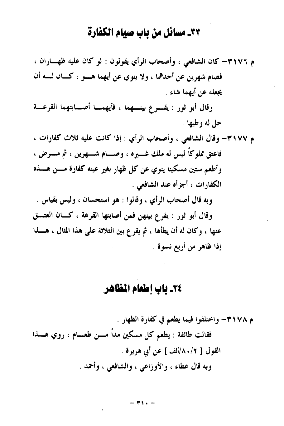 م 3176 - كان الشافعي، وأصحاب الرأي يقولون: لو كان عليه ظهاران، فصام شهرين عن أحد، ولا ينوي عن أيهما هو، كان له أن يجعله عن أيهما شاء.