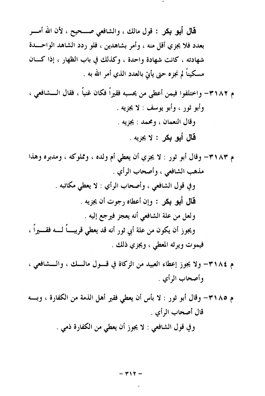 م 3184 - ولا يجوز إعطاء العبيد من الزكاة في قول مالك، والشافعي، وأصحاب الرأي.