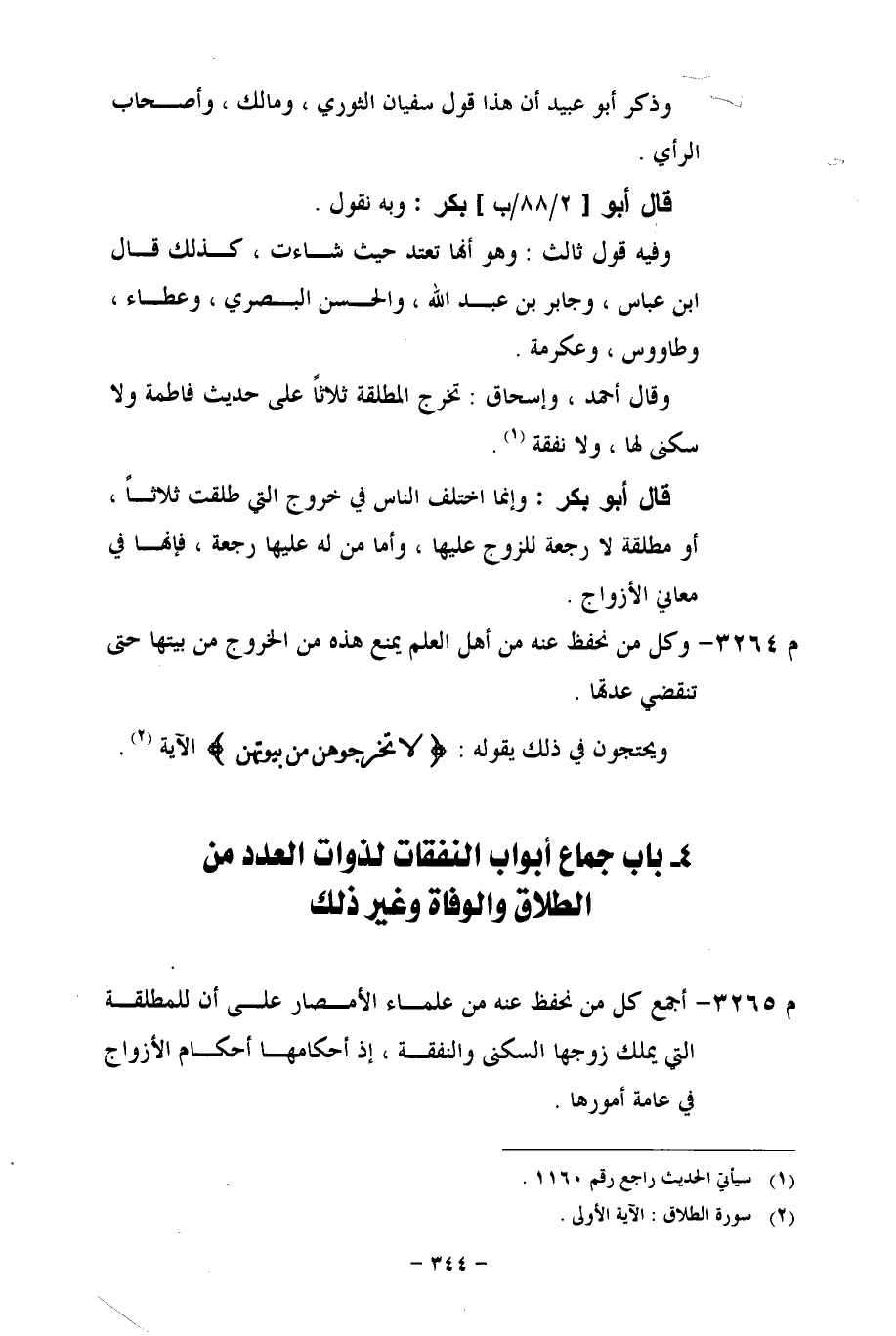 4 - باب جماع أبواب النفقات لذوات العدد من الطلاق والوفا وغير ذلك
