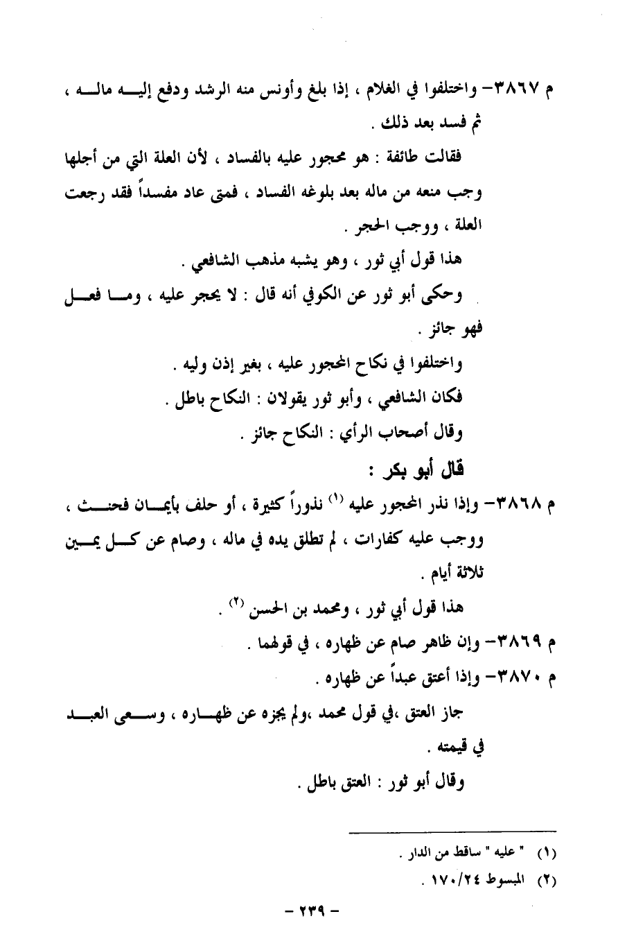 م 3867 - واختلفوا في الغلام، إذا بلغ وأونس منه الرشد ودفع إليه ماله، ثم فسد بعد ذلك.