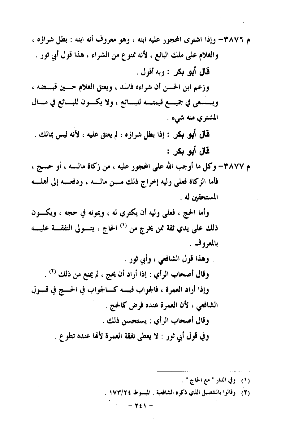 م 3877 - وكل ما أوجب الله على المحجور عليه، من زكاة ماله، أو حج، فأما الزكاة فعلى وليه إخراج ذلك من ماله، ودفعه إلى أهله المستحقين له.