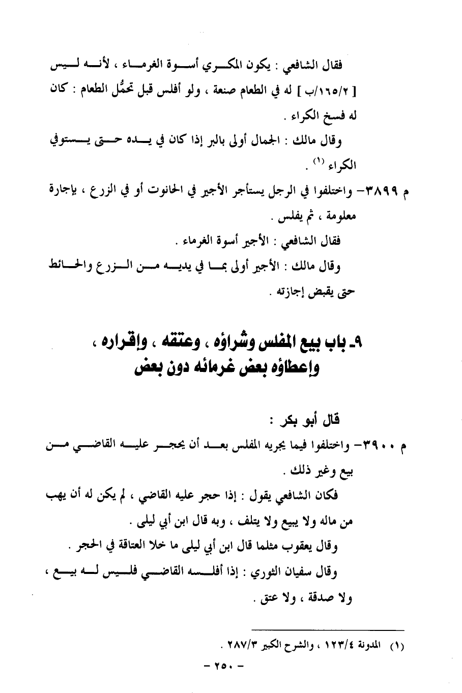 م 3899 - واختلفوا في الرجل يستأجر الأجير في الحانوت أو في الزرع، بإجارة معلومة، ثم يفلس.