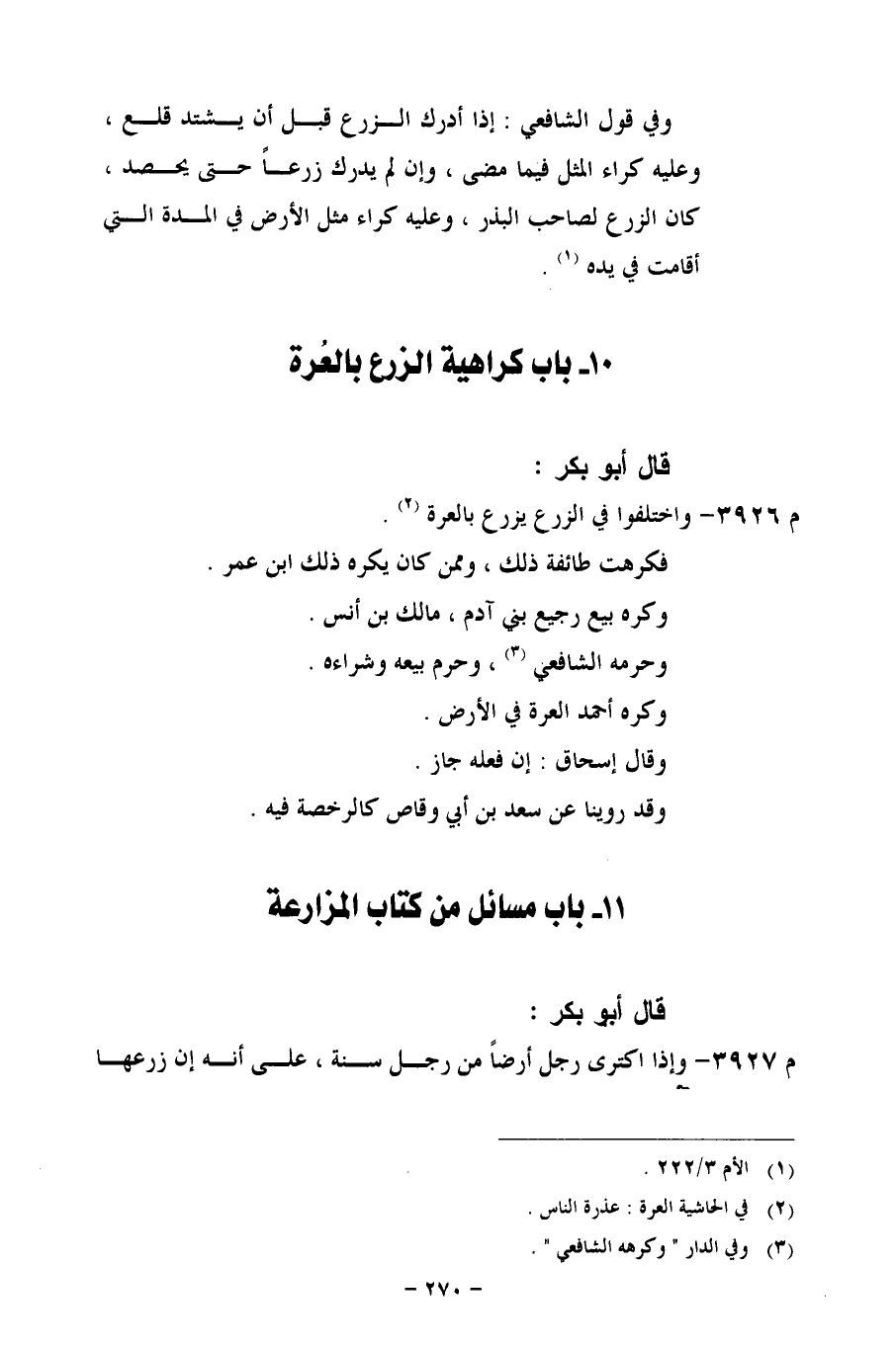 م 3926 - واختلفوا في الزرع يزرع بالعرة (¬1).