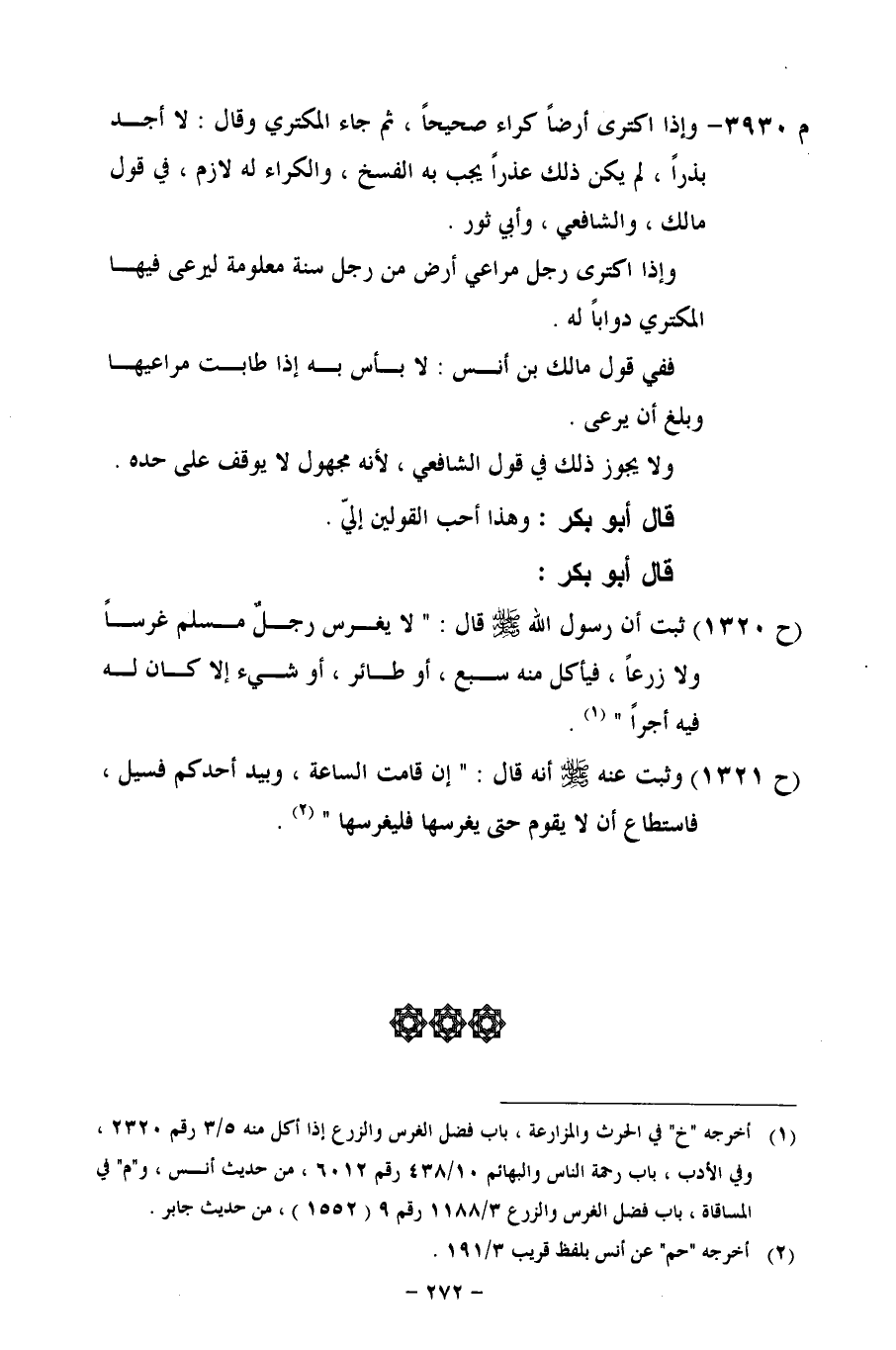 (ح 1320) ثبت أن رسول الله قال: "لا يغرس رجلٌ مسلم غرساً ولا زرعاً، فيأكل منه سبع، أو طائر، أو شيء إلا كان له فيه أجراً".