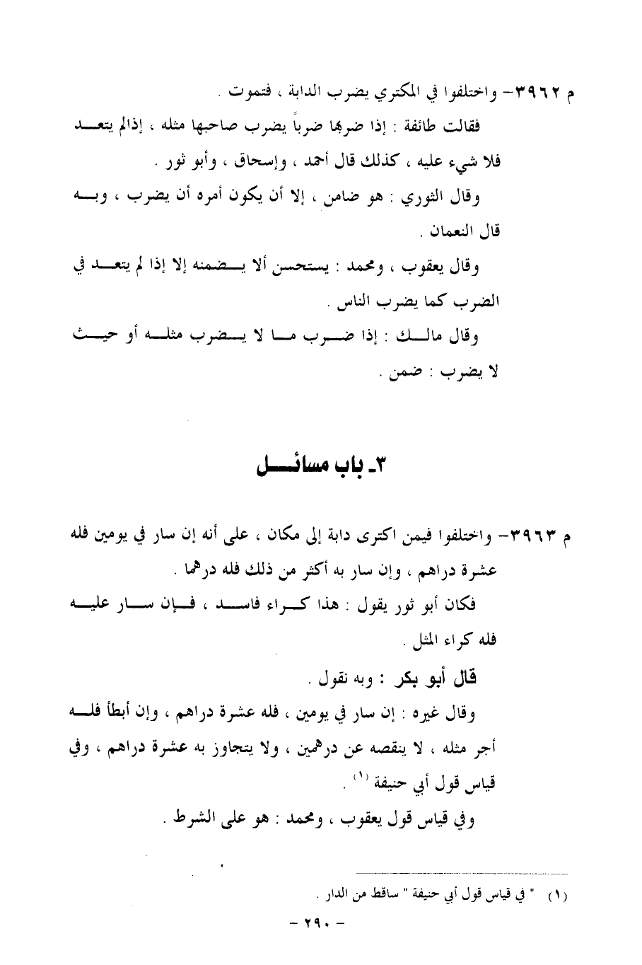 م 3963 - واختلفوا فيمن اكترى دابة إلى مكان، على أنه إن سار في يومين فله عشرة دراهم، وإن سار به أكثر من ذلك فله درهما.