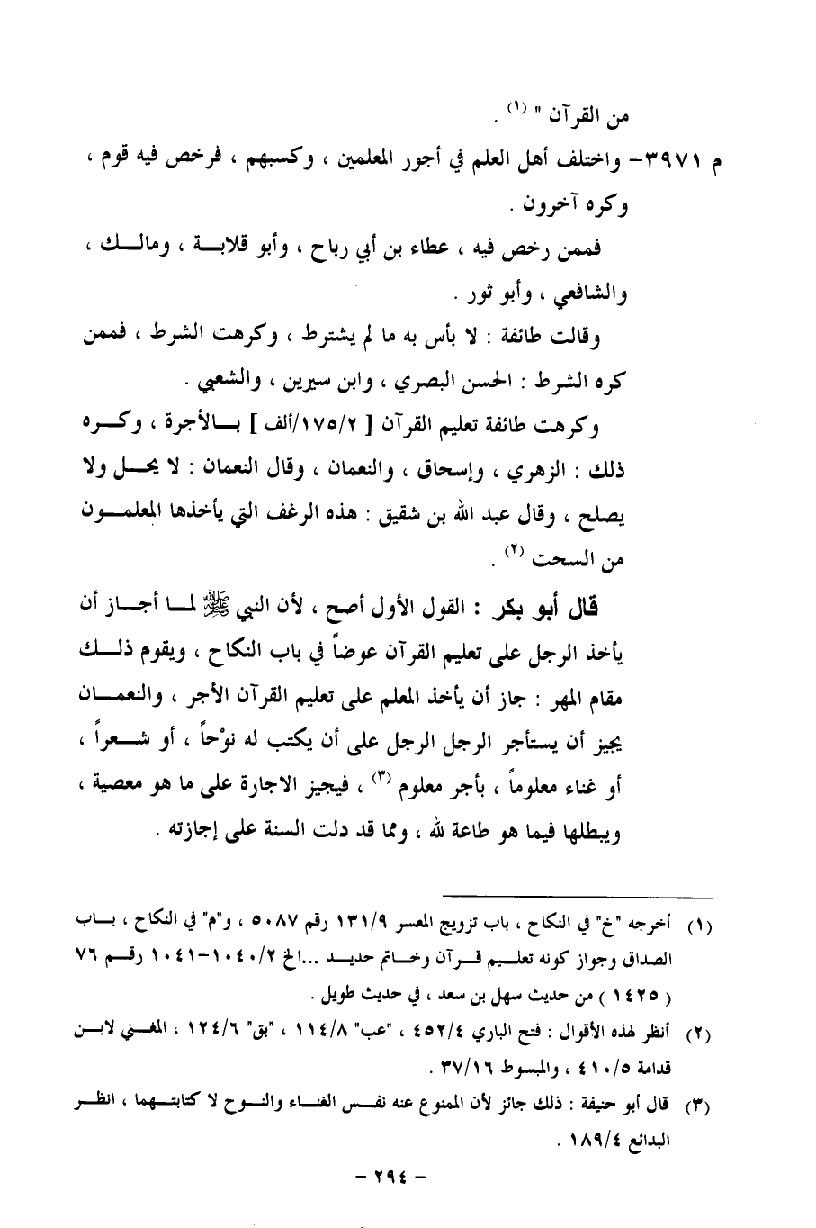 م 3971 - واختلف أهل العلم في أجور المعلمين، وكسبهم، فرخص فيه قوم، وكره آخرون.