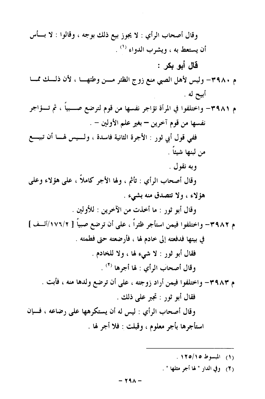 م 3981 - واختلفوا في المرأة تؤاجر نفسها من قوم لترضع صبياً، ثم تؤاجر نفسها من قوم آخرين- بغير علم الأولين-.