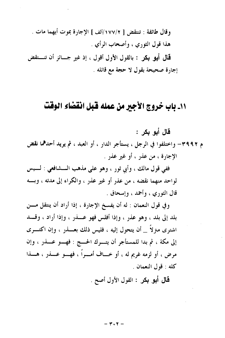 قال أبو بكر؟ بالقول الأول أقول، إذ غير جائز أن تنتقض إجارة صحيحة بقول لا حجة مع قائله.