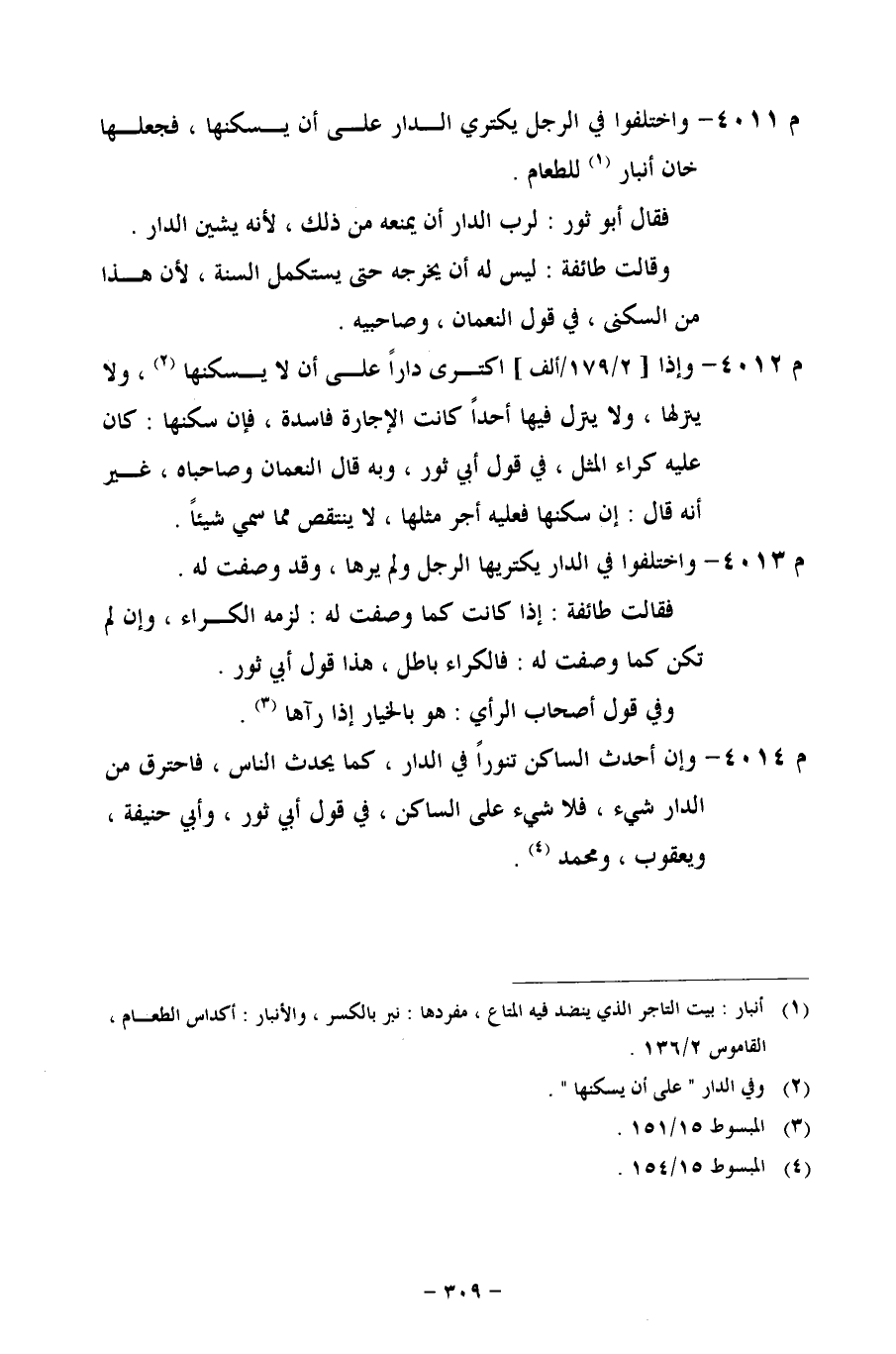 م 4011 - واختلفوا في الرجل يكتري الدار على أن يسكنها، فجعلها خان أنبار للطعام.