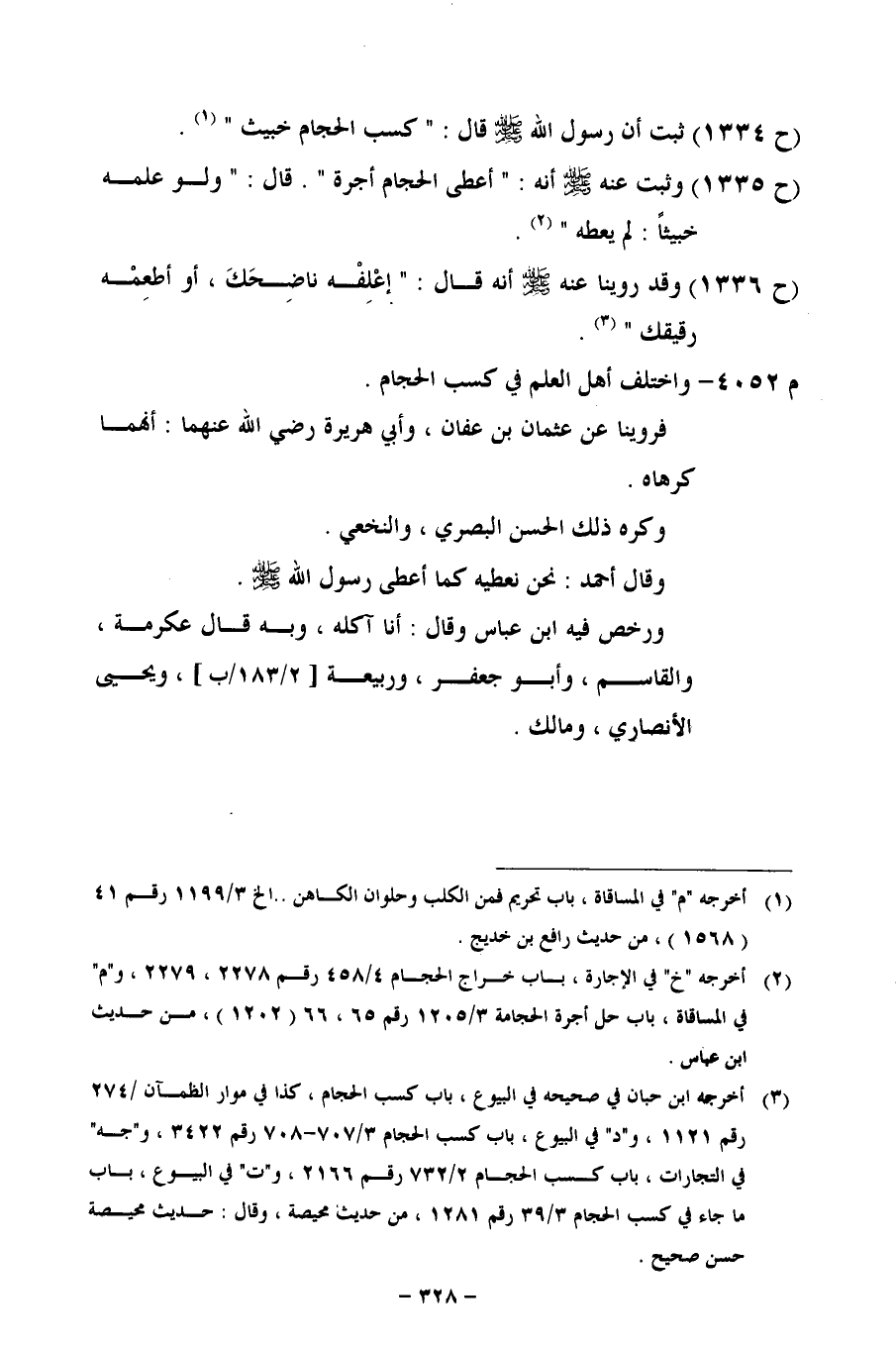 (ح 1334) ثبت أن رسول الله- صلى الله عليه وسلم - قال: "كسب الحجام خبيث".