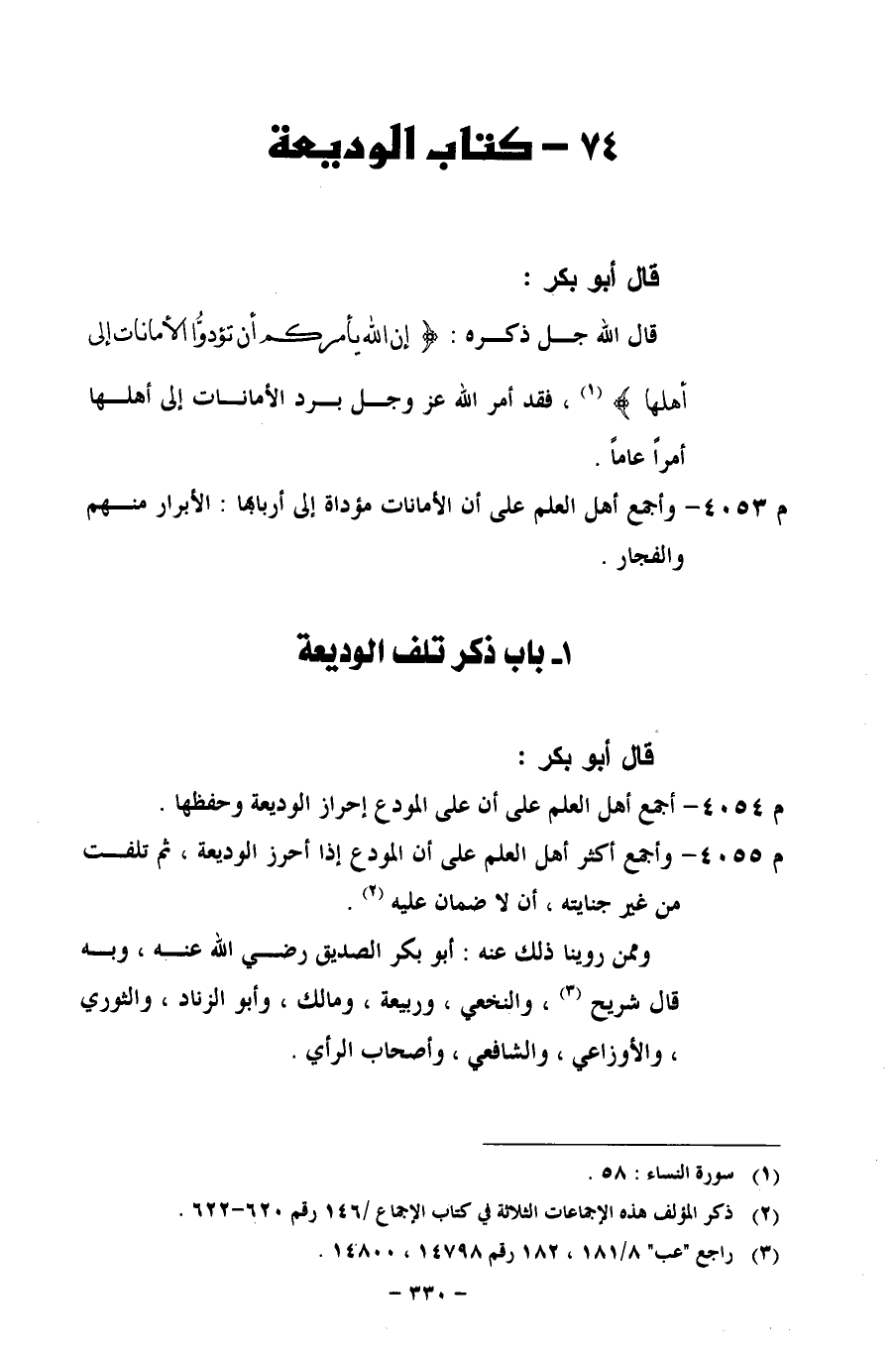 م 4053 - وأجمع أهل العلم على أن الأمانات مؤداة إلى أربابها: الأبرار منهم والفجار.
