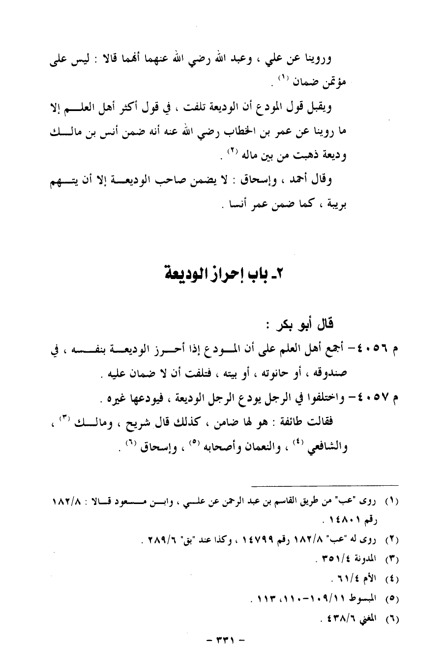 وقال أحمد، وإسحاق: لا يضمن صاحب الوديعة إلا أن يتهم بريبة، كما ضمن عمر أنسا.