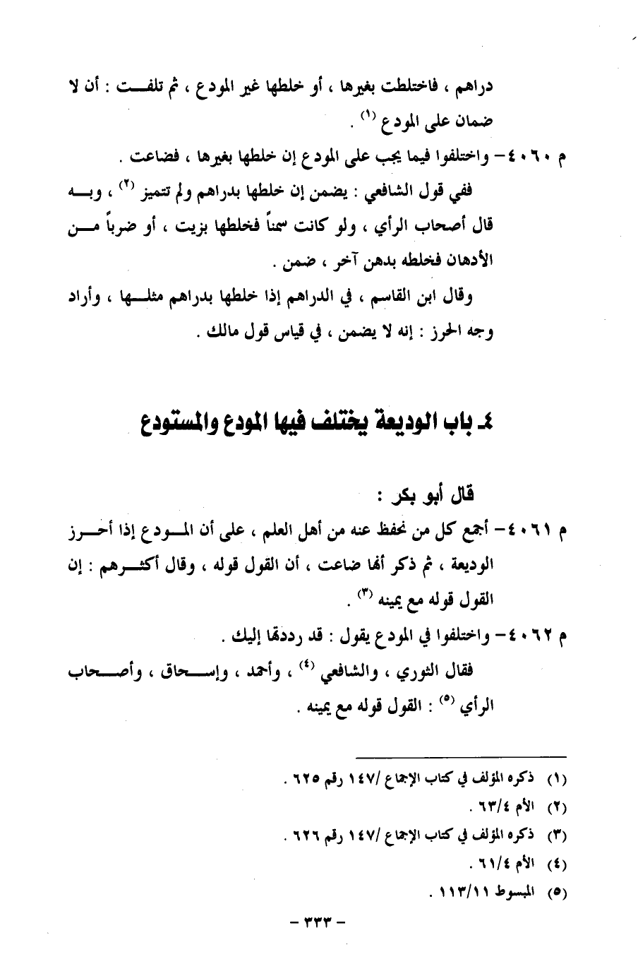 م 4061 - أجمع كل من نحفظ عنه من أهل العلم، على أن المودع إذا أحرز الوديعة، ثم ذكر أنها ضاعت، أن القول قوله، وقال أكثرهم: إن القول قوله مع يمينه.