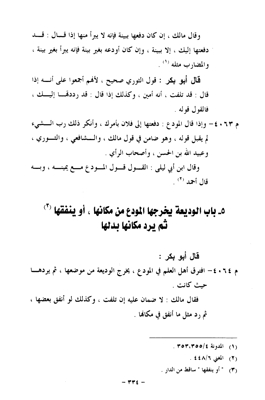 م 4064 - افترق أهل العلم في المودع، يخرج الوديعة من موضعها، ثم يردها حيث كانت.