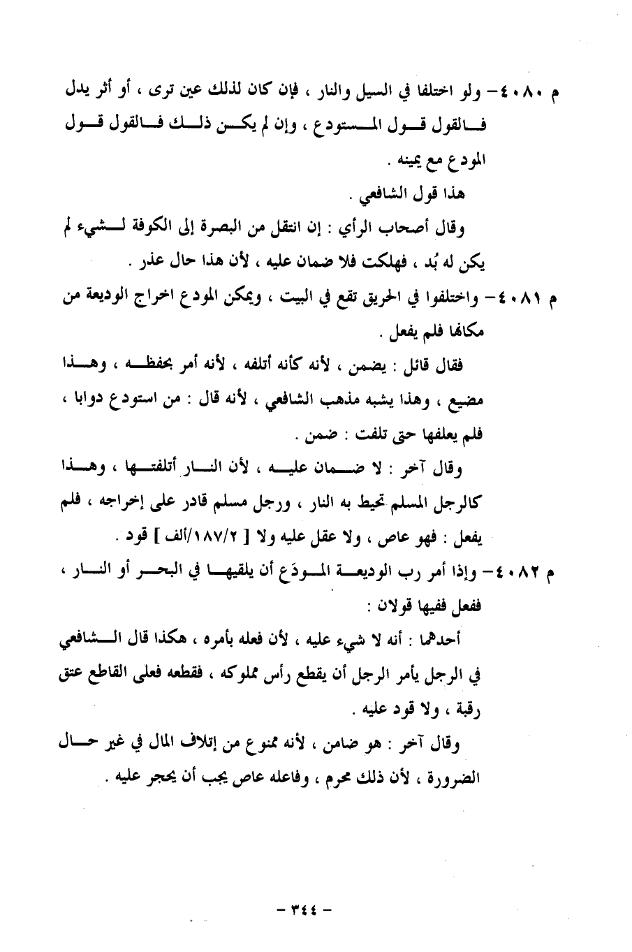 م 4080 - ولو اختلفا في السيل والنار، فإن كان لذلك عين ترى، أو أثر يدل فالقول قول المستودع، وإن لم يكن ذلك فالقول قول المودع مع يمينه.
