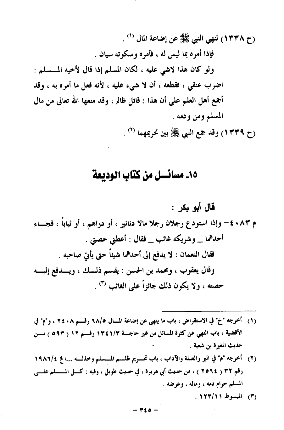 (ح 1338) لنهي النبي- صلى الله عليه وسلم - عن إضاعة المال (1).