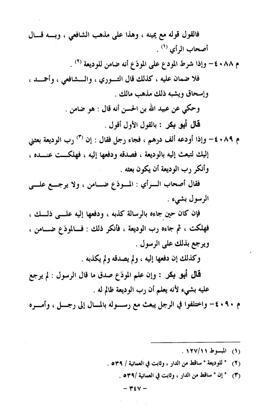 (¬1) "للوديعة" ساقط من الدار، وثابت في العمانية / 539.