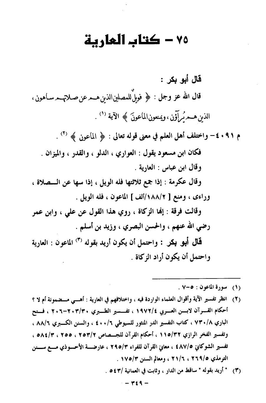قال أبو بكر: واحتمل أن يكون أريد بقوله (¬1) الماعون: العارية واحتمل أن يكون أراد الزكاة.