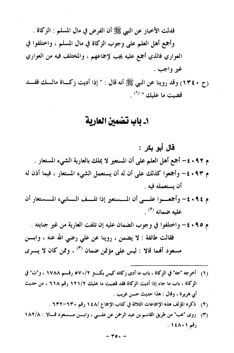 وأجمع أهل العلم على وجوب الزكاة في مال المسلم، واختلفوا في العواري فالذي أجمع عليه يجب لإجماعهم، والمختلف فيه من العواري غير واجب.