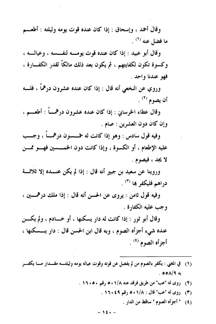 وقال أبو عبيد: إذا كان عنده قوت يومه لنفسه، وعياله، وكسوة تكون لكفايتهم، ثم يكون بعد ذلك مالكاً لقدر الكفارة، فهو عندنا واحد.