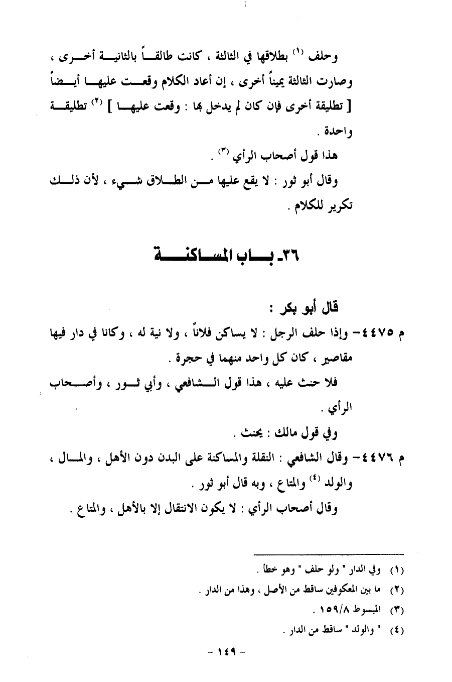 م 4475 - وإذا حلف الرجل: لا يساكن فلاناً، ولا نية له، وكانا في دار فيها مقاصير، كان كل واحد منهما في حجرة.