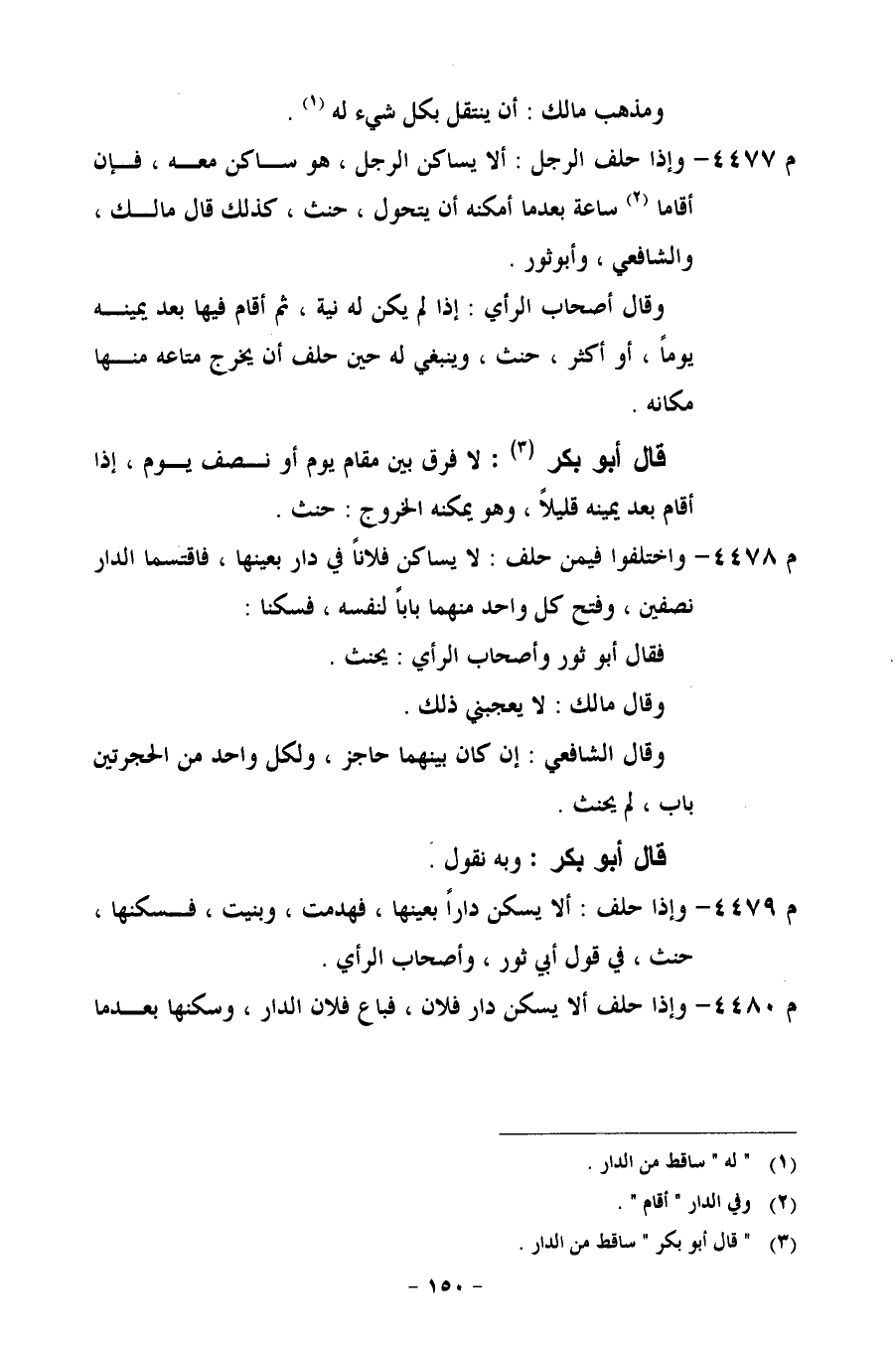 م 4477 - وإذا حلف الرجل: ألا يساكن الرجل، هو ساكن معه، فإن أقاما (¬2) ساعة بعد ما أمكنه أن يتحول، حنث، كذلك قال مالك، والشافعي، وأبو ثور.