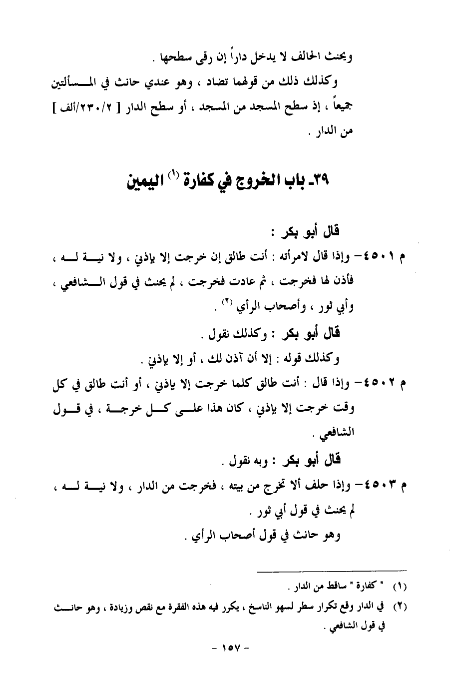 م 4503 - وإذا حلف ألا تخرج من بيته، فخرجت من الدار، ولا نية له، لم يحنث في قول أبي ثور.