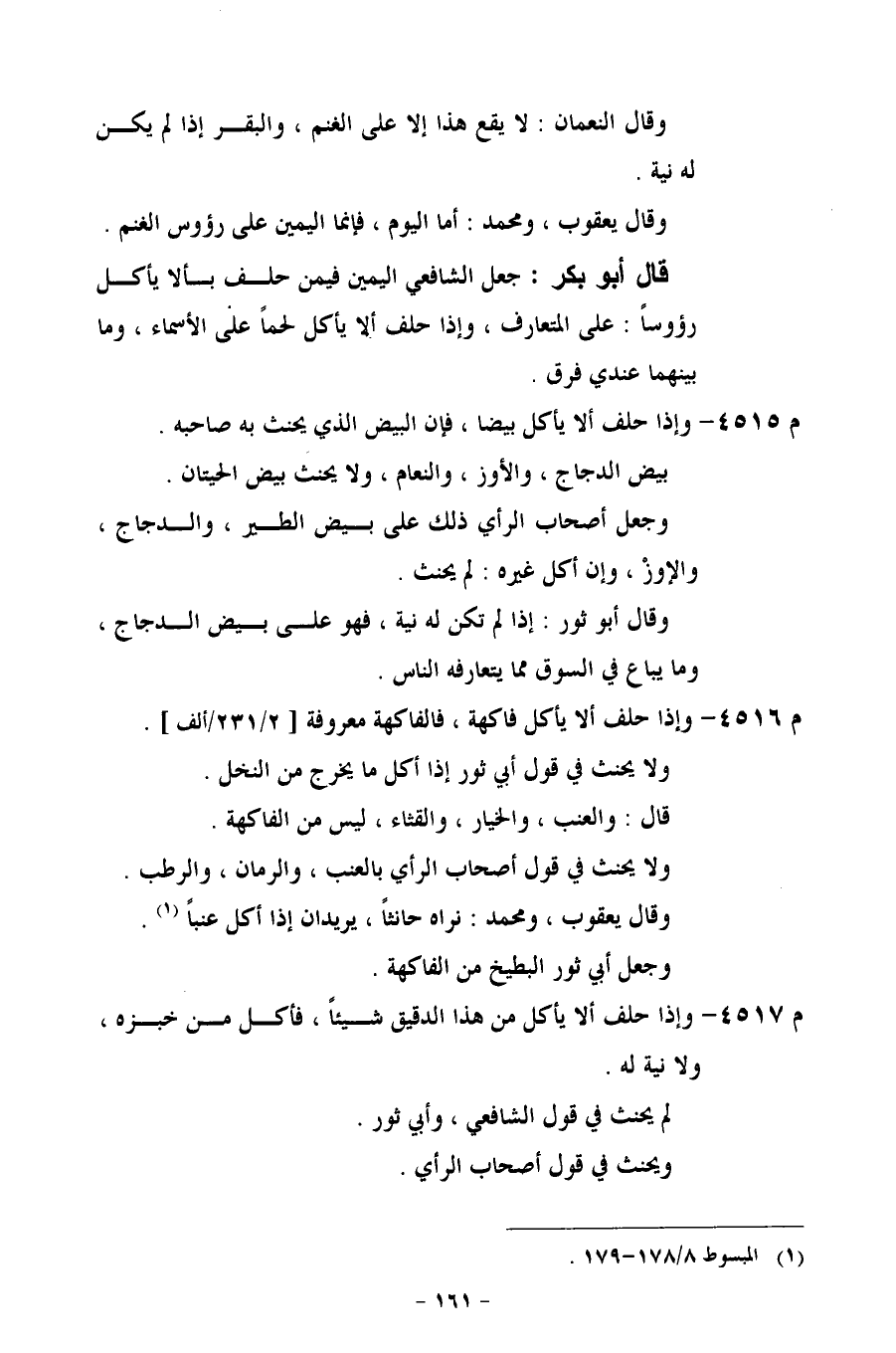 م 4516 - وإذا حلف ألا يأكل فاكهة، فالفاكهة معروفة [2/ 231/ألف].