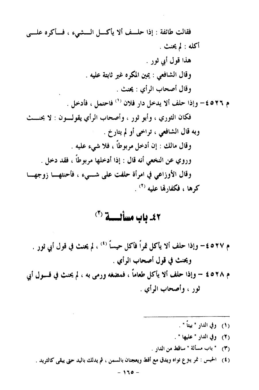 م 4528 - وإذا حلف ألا يأكلُ طعاماً، فمضغه ورمى به، لم يحنث في قول أبي ثور، وأصحاب الرأي.