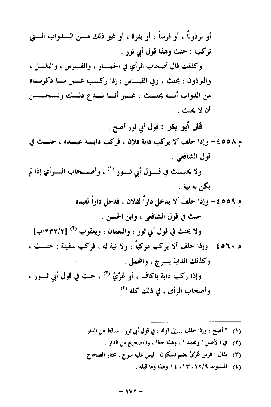 م 4558 - وإذا حلف ألا يركب دابة فلان، ركب دابة عبده، حنث في قول الشافعي.