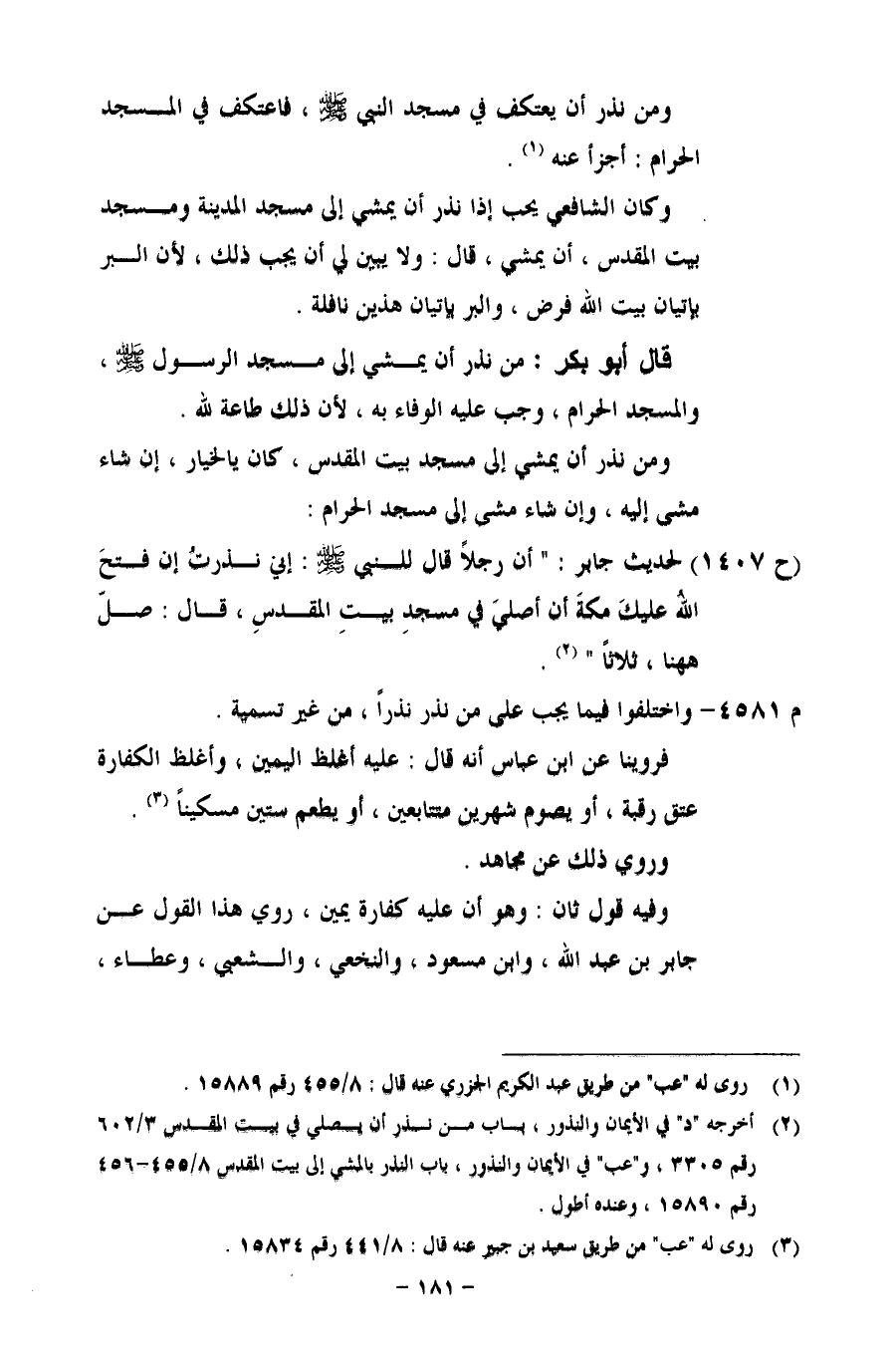 (ح 1407) لحديث جابر: "أن رجلاً قال للنبي - صلى الله عليه وسلم - إني نذرتُ إن فتحَ اللهُ عليك مكةَ أن أصلي في مسجدِ بيتِ المقدسِ، قال: صلّ ههنا، ثلاثاً".