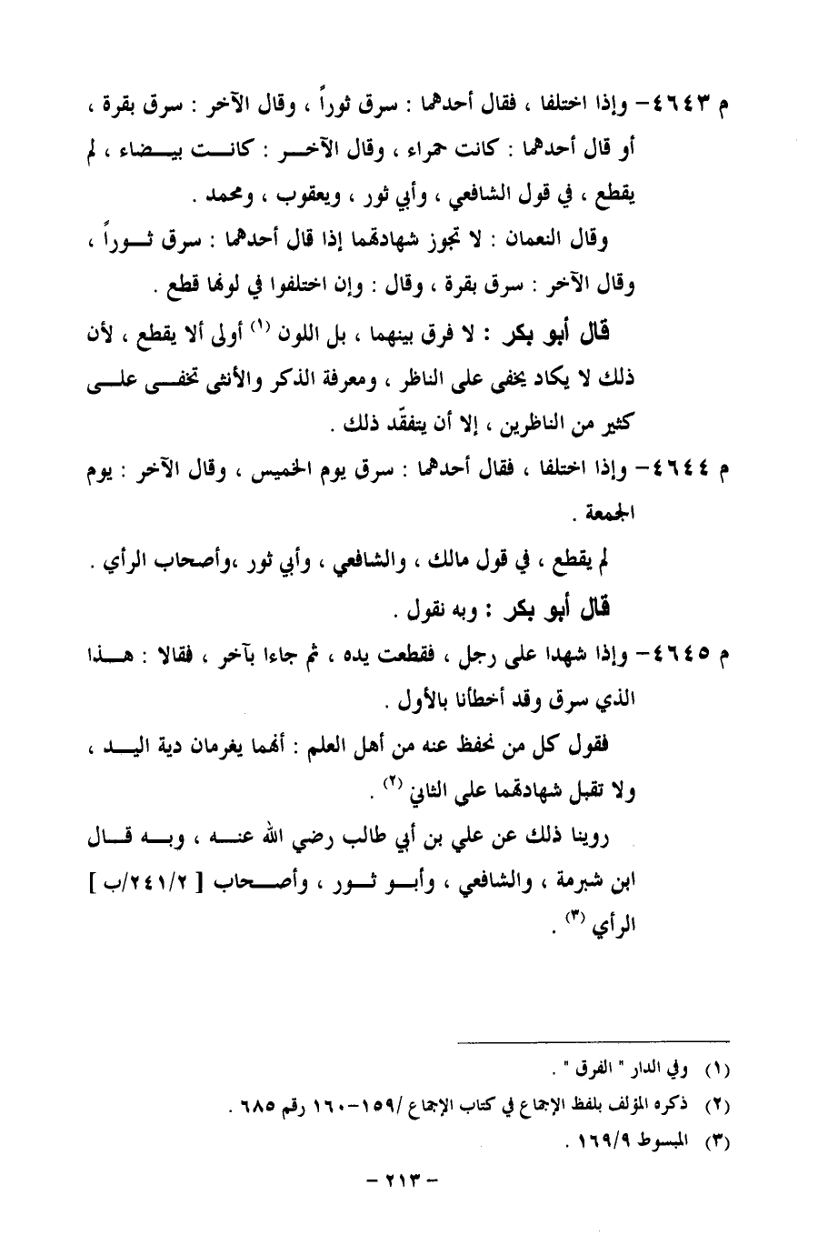 م 4643 - وإذا اختلفا، فقال أحدهما: سرق ثوراً، وقال الآخر: سرق بقرة، أو قال أحدهما: كانت حمراء، وقال الآخر: كنت بيضاء، لم يقطع، في قول الشافعي، وأبي ثور، ويعقوب، ومحمد.