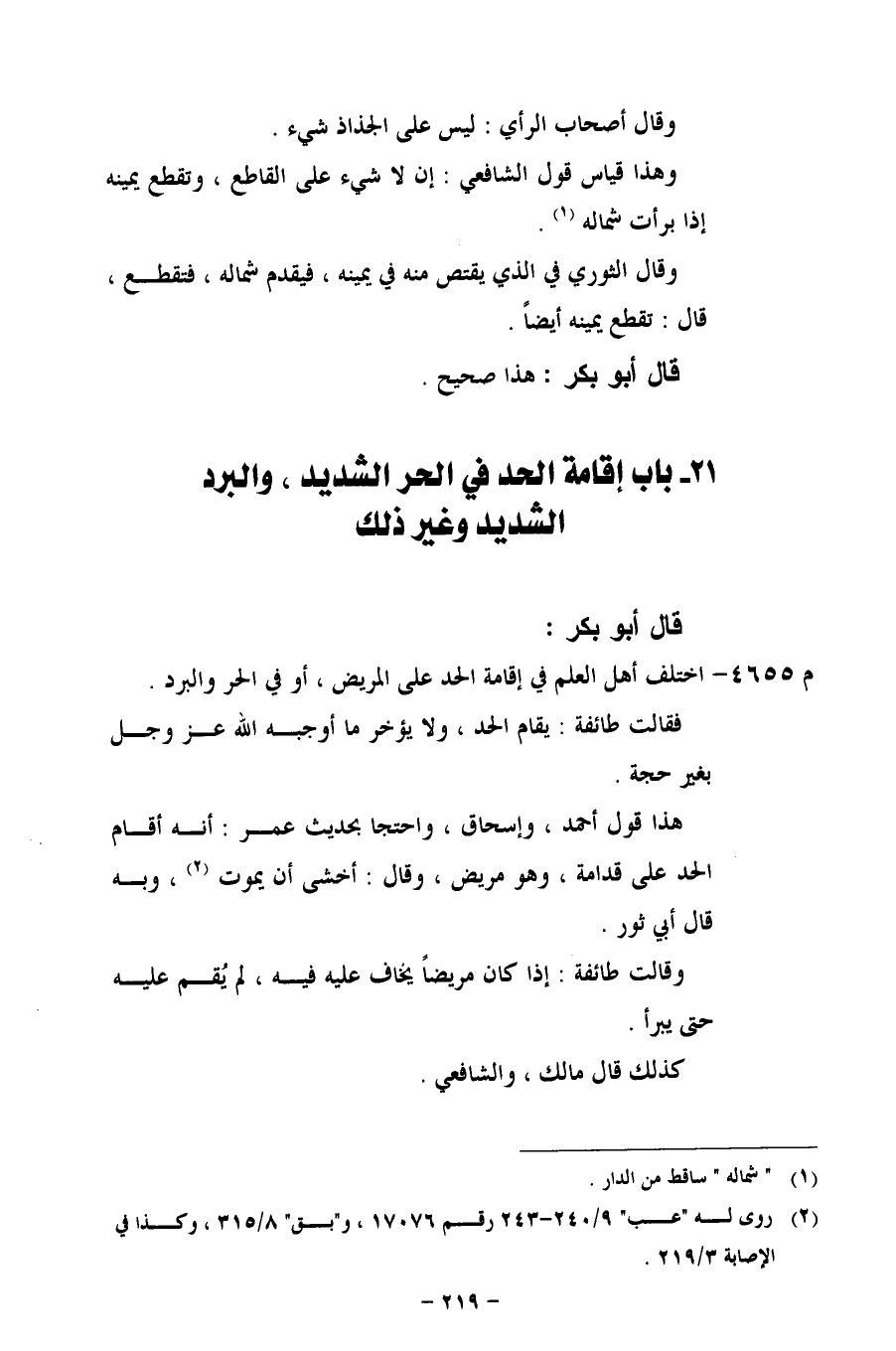 21 - باب إقامة الحد في الحر الشديد، والبرد الشديد وغير ذلك