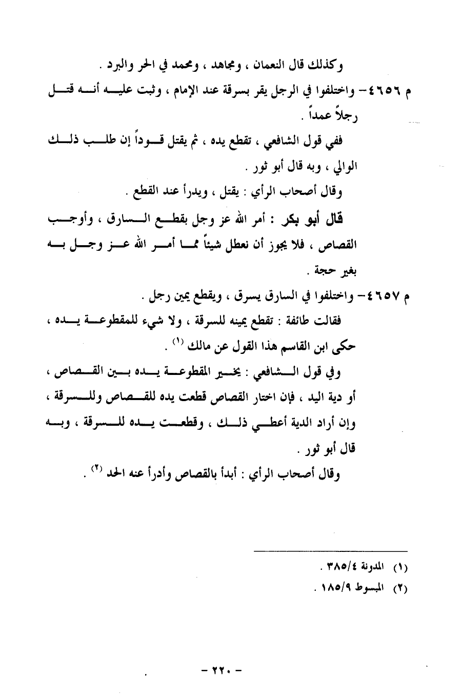 م 4657 - واختلفوا في السارق يسرق، ويقطع يمين رجل.