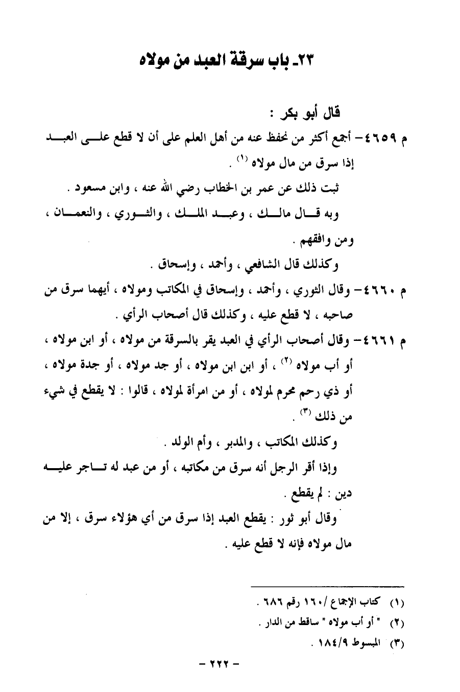 م 4659 - أجمع أكثر من نحفظ عنه من أهل العلم على أن لا قطع على العبد إذا سرق من مال مولاه.
