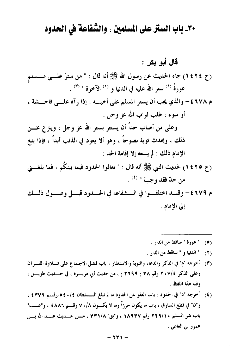 30 - باب الستر على المسلمين، والشفاعة في الحدود