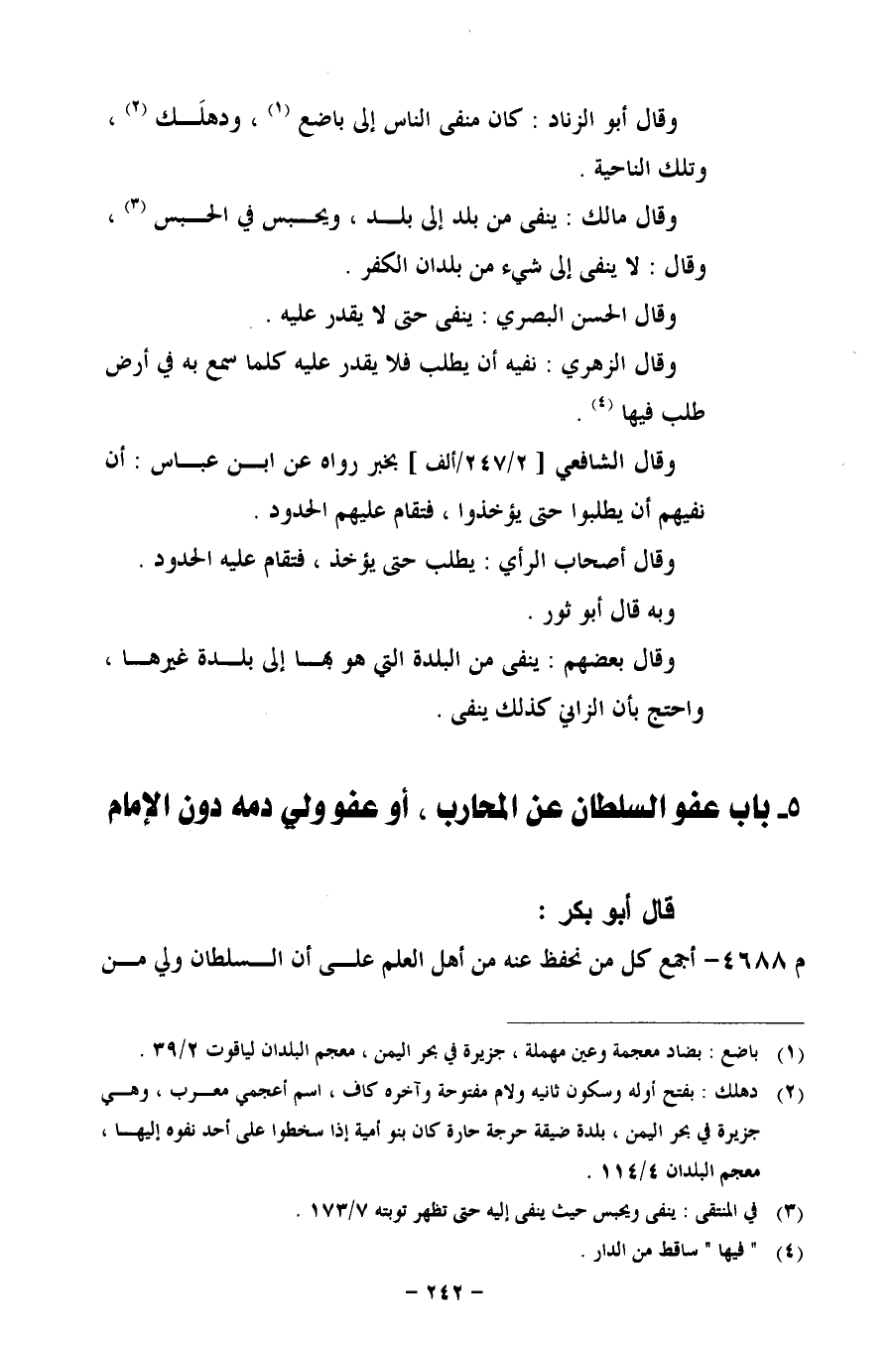 5 - باب عفو السلطان عن المحارب، أو عفو ولي دمه دون الإمام