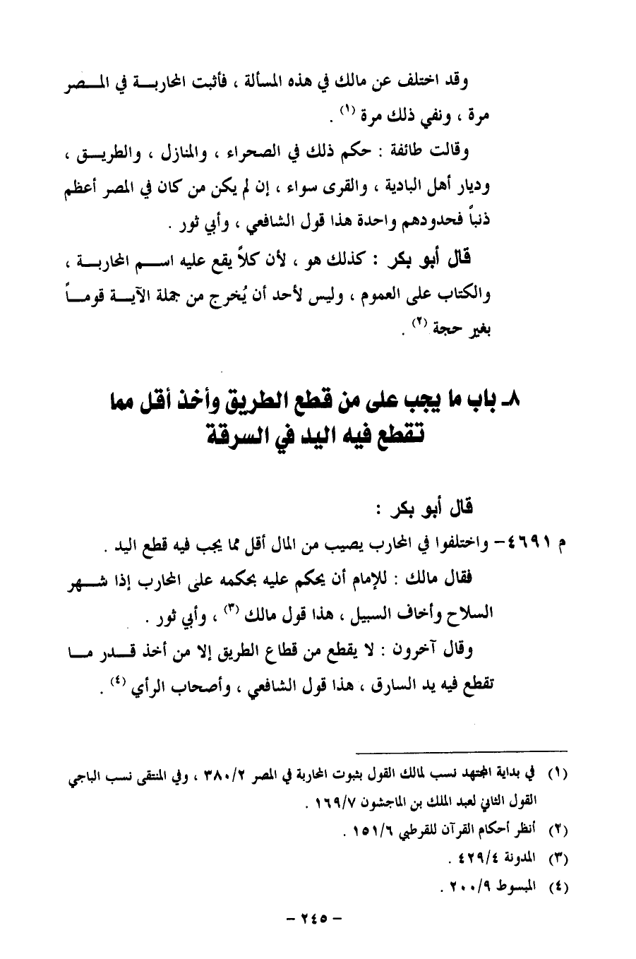 م 4691 - واختلفوا في المحارب يصيب من المال أقل مما يجب فيه قطع اليد.