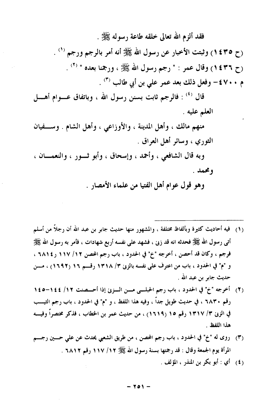 (ح 1435) وثبتت الأخبار عن رسول الله- صلى الله عليه وسلم - أنه أمر بالرجم ورجم.