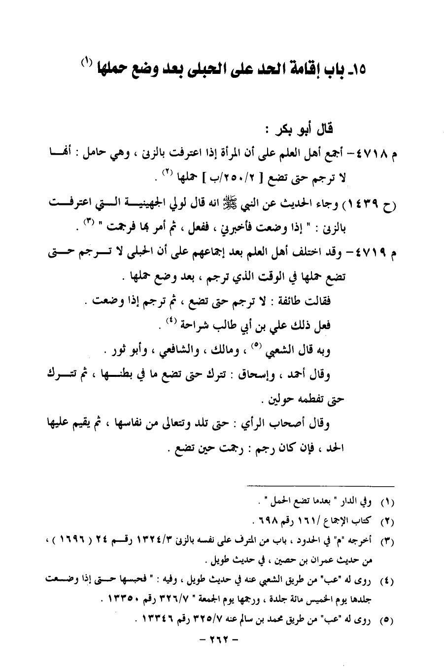 15 - باب إقامة الحد على الحبلى بعد وضع حملها (¬1)