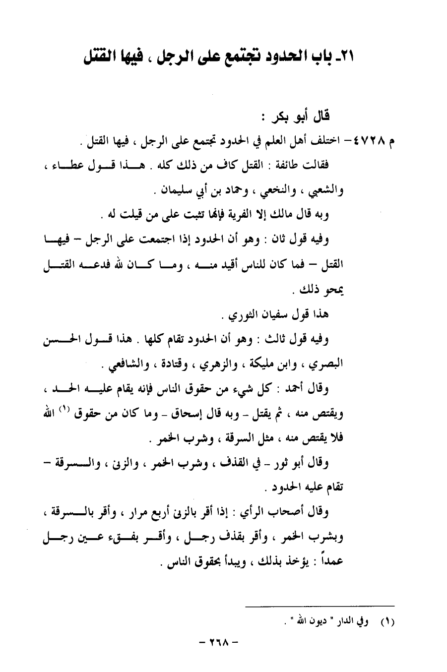 21 - باب الحدود فى تجتمع على الرجل، فيها القتل