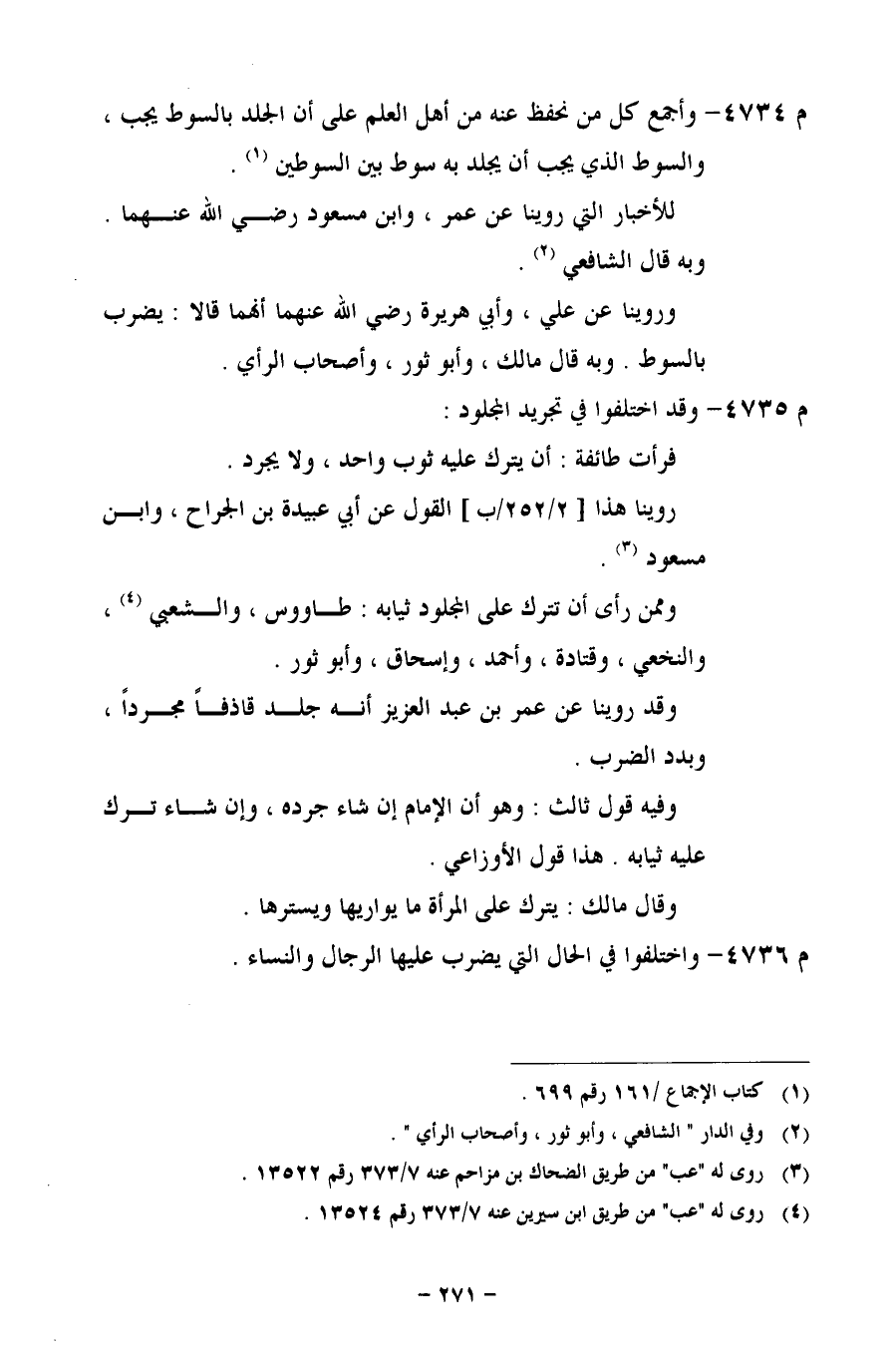 م 4735 - وقد اختلفوا في تجريد المجلود: