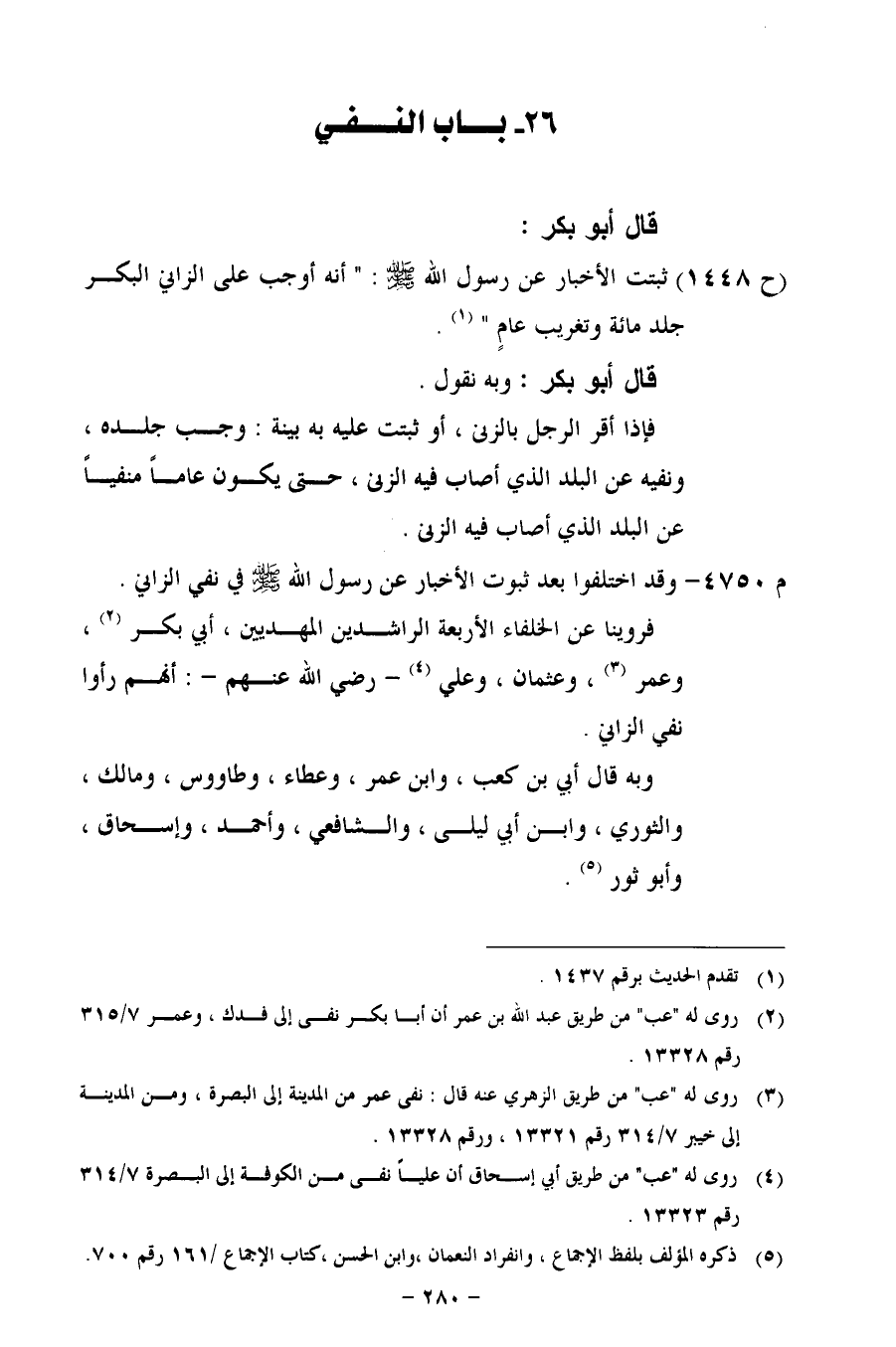 م 4750 - وقد اختلفوا بعد ثبوت الأخبار عن رسول الله- صلى الله عليه وسلم - في نفي الزاني.