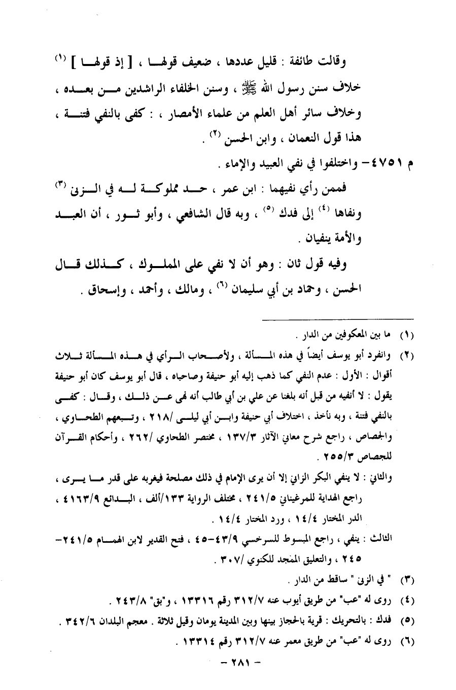 م 4751 - واختلفوا في نفي العبيد والإماء.
