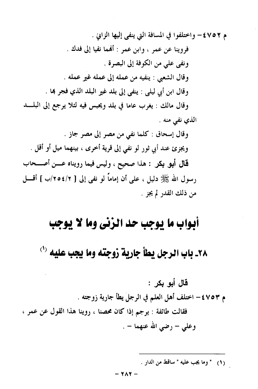 م 4752 - واختلفوا في المسافة التي ينفى إليها الزاني.