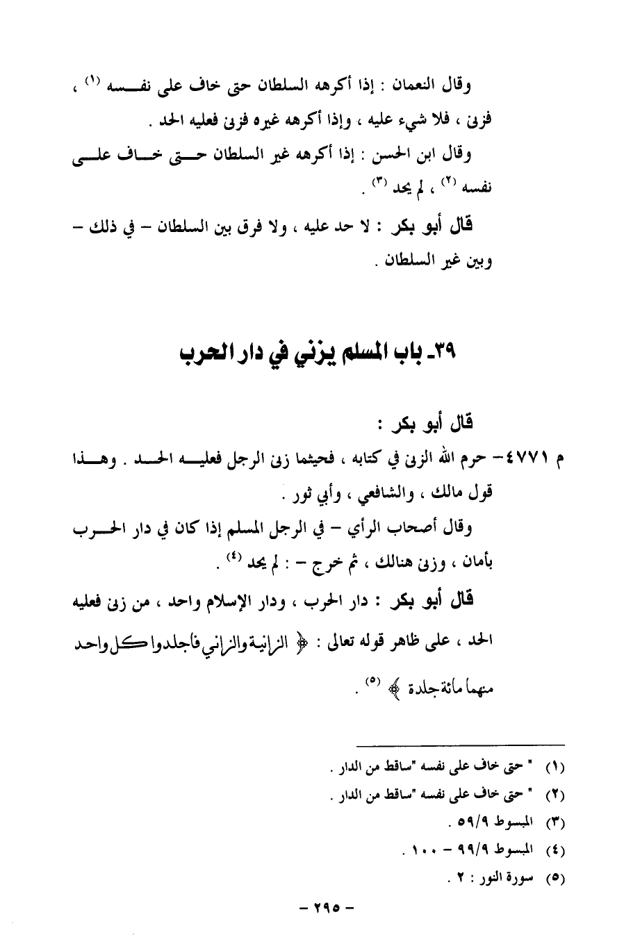 قال أبو بكر: دار الحرب، ودار الإسلام واحد، من زنى فعليه