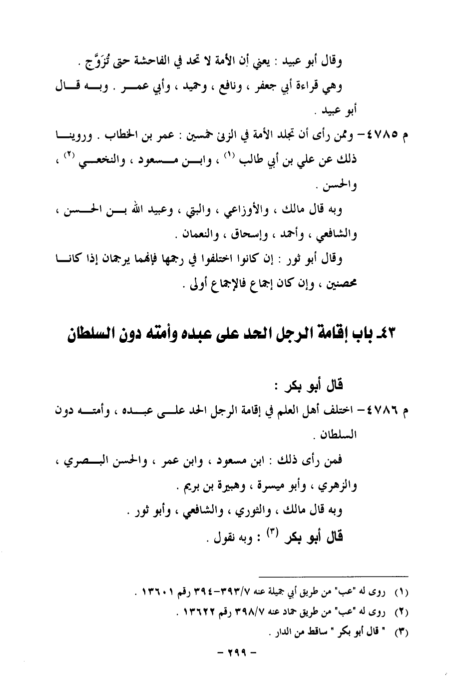 م 4785 - وممن رأى أن تجلد الأمة في الزني خمسين: عمر بن الخطاب. وروينا ذلك عن علي بن أبي طالب، وابن مسعود، والنخعي، والحسن.