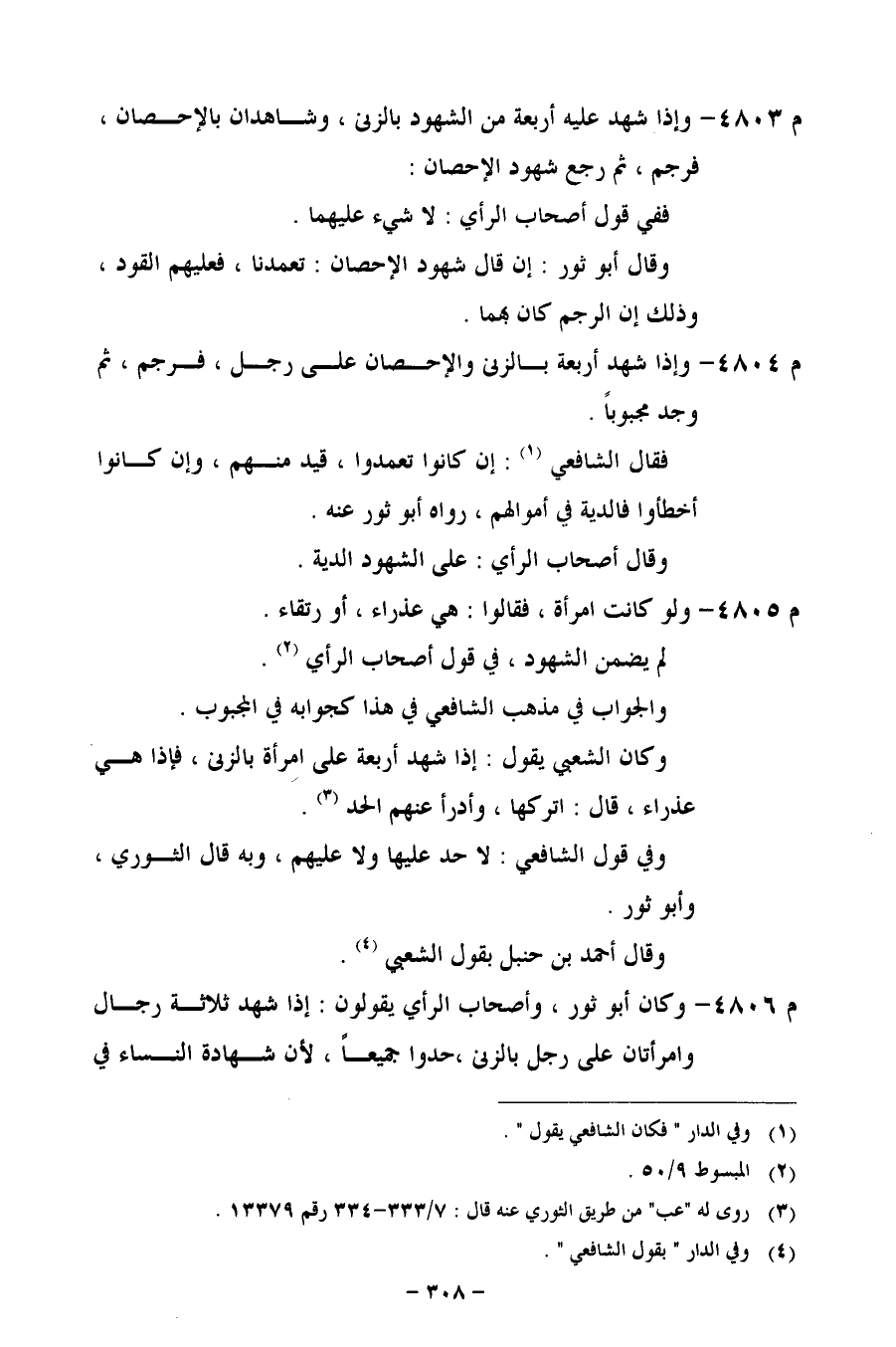 م 4806 - وكان أبو ثور، وأصحاب الرأي يقولون: إذا شهد ثلاثة رجال وامرأتان على رجل بالزني، حدوا جميعاً، لأن شهادة النساء في